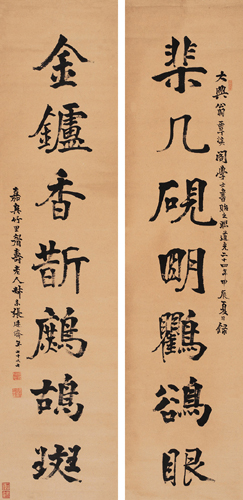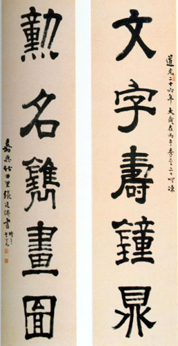 张廷济,1768,1835,浙江嘉兴人。清代金石学家、书法家。字叔未,一字说舟,号竹田,又号海岳。嘉庆举人。学有根底,诗文并美。工书善画。家中收藏极富,因而精于鉴赏考证。楷书多取法颜、褚。行书多取米芾。篆隶皆上溯周秦汉魏,其中最具特色的应是行、楷书,冠绝当时。《清史列传》称“叔未书,法南宫,草隶独出冠时”。著有《金石文字》、《清仪阁所藏古器物文》、《清仪阁金石题识》、《清仪阁古印偶存》、《桂馨堂集》等。传世书迹颇富。《王铎书画合壁卷跋》,书于道光十七年(1837),纸本墨迹。行书。凡10行,共162字。高32.5厘米。日本大阪市立美术馆藏。从张廷济所书此幅作品看,他执笔较高,腕力十分稳健。运笔自然,不失中锋。尚有几处欲断还连,笔断意连,更显得其态随意。具有自然流动美之感。结构茂密,向心力强。笔力遒劲,似有米芾笔意,亦颇具有书卷之气。张氏又擅长章法,整幅布局上的轻重、强弱,及隔字跳跃则是他的独到之处。