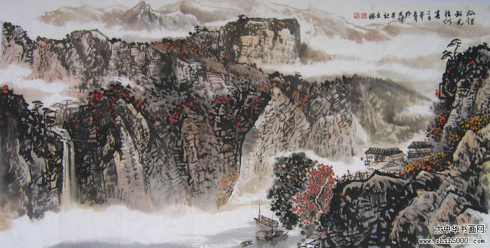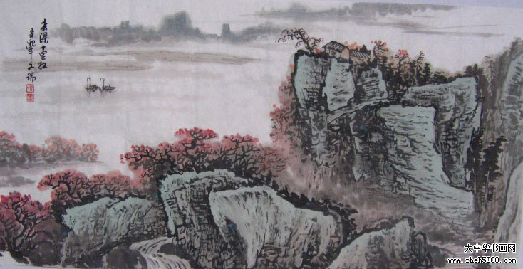贺文瑞国画 春深十里红