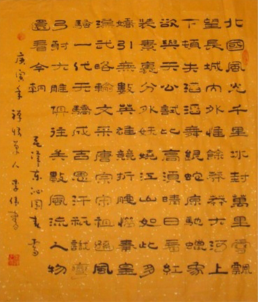 李伟,1965年11月出生,大专毕业。现供职于河南省淮滨县人大常委会办公室。工作之余,钟情书法,先后学习颜真卿《颜勤礼碑》、《张迁碑》、《曹全碑》;小篆、《祥隶》、王羲之《兰亭序》等。