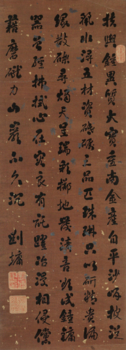 刘墉,1719年生,1804年逝世,山东诸城人。清代书法家。字崇如,号石庵、青原、香岩、日观峰道人。统勋子。乾隆进士、官体仁阁大学士,加太子太保,谥文清。书法浑厚雄劲,得钟太傅、颜鲁公神髓,一时名满天下。在乾隆之际,翁方纲、梁同书、王文治、刘墉并享书法声誉。当时人们称翁、梁、王、刘“四大家”。其书法艺术成就,当推刘墉最高。亦有以来其与翁方纲、成亲王永瑆、铁保并称“翁刘成铁”。包世臣《艺舟双楫》称:“文清少习香光,壮迁坡志,七十以后潜心北朝碑版,虽精力已衰,未能深造,然意兴学识,超然尘外。”近人康有为《广艺舟双楫》称“石庵亦出董(其昌),然大厚思沉,筋摇脉聚,近世行草作浑厚一路,未有能出石庵之范围者,吾故谓石庵集帖学之成也。流传书迹较多。著有《石庵诗集》,刻有《清爱堂帖》。《小楷册》,书于嘉庆元年(1796)。纸本墨迹。凡24行,共360字。各页均纵11.8厘米,横6.9厘米。故宫博物院藏。刘墉的书法,初看圆润软滑,若团团棉花,细审则骨络分明,内含刚劲。刘墉精于小楷,其特色由此件作品可窥一斑。他书的蝇头小楷具有擘窠大字的恢宏气象,结体丝毫不令人觉得拘紧,点画洁净讲究。尤其粗重与纤细交织在一起,加之偶尔揉入行草笔意,使得整个作品在规模的大效果中不乏生动活泼的情趣,这是十分难能可贵的。后世人们称许他的小楷不仅有钟繇、王羲之、颜真卿、苏轼的法度,还深得魏、晋小楷风致,实不为过。