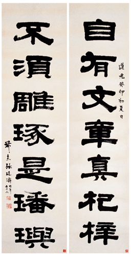 张廷济,1768,1835,浙江嘉兴人。清代金石学家、书法家。字叔未,一字说舟,号竹田,又号海岳。嘉庆举人。学有根底,诗文并美。工书善画。家中收藏极富,因而精于鉴赏考证。楷书多取法颜、褚。行书多取米芾。篆隶皆上溯周秦汉魏,其中最具特色的应是行、楷书,冠绝当时。《清史列传》称“叔未书,法南宫,草隶独出冠时”。著有《金石文字》、《清仪阁所藏古器物文》、《清仪阁金石题识》、《清仪阁古印偶存》、《桂馨堂集》等。传世书迹颇富。《王铎书画合壁卷跋》,书于道光十七年(1837),纸本墨迹。行书。凡10行,共162字。高32.5厘米。日本大阪市立美术馆藏。从张廷济所书此幅作品看,他执笔较高,腕力十分稳健。运笔自然,不失中锋。尚有几处欲断还连,笔断意连,更显得其态随意。具有自然流动美之感。结构茂密,向心力强。笔力遒劲,似有米芾笔意,亦颇具有书卷之气。张氏又擅长章法,整幅布局上的轻重、强弱,及隔字跳跃则是他的独到之处。