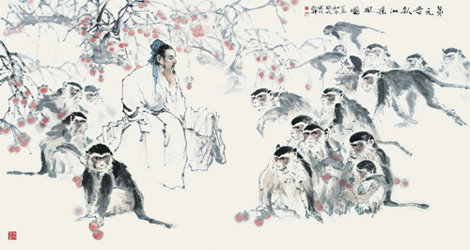 易元吉 三猿捕鹭图