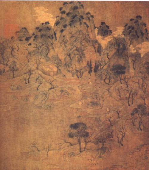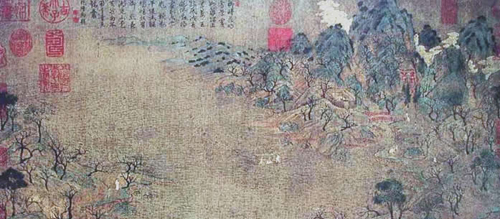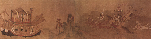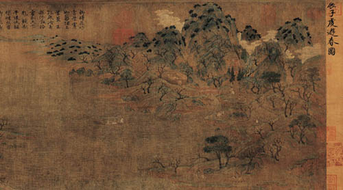 展子虔(约550-617),北周末隋初杰出画家。渤海(今河北河间县)人。历北齐、北周,入隋为朝散大夫、帐内都督。曾在洛阳、长安、扬州等地的寺院画过许多壁画。善画故事、人马、山水、楼台;人物的描法细致,后再用色晕开人物的面部,神彩意度极为深致。展子虔所非《游春图》是我国目前发现的存世的山水卷轴画中最古的一幅。《宣和画谱》称赞他:“写江山远近之势尤工,故咫尺有千里趣”。他的山水画比起六朝前山水画那种“水不溶泛,人大于山”的稚拙画法要成熟得多。据记载,他的《仙山楼阁图》以青绿勾勒为主,笔调甚为细密,后人称他为“唐画之祖”。美史史家称顾恺之、陆探微、张僧繇、展 子虔为唐以前杰出的四大画家。