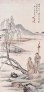 诸健秋,名鹄,一宇若侯,清光绪十七年(1891年)二月二十一日生, 无锡城内顾家弄人。其父诸海萍是画家。诸健秋早年由父传授技法,及长 又随兄诸永年学画铅画照相。光绪三十年随兄在上海大陆商场附近设画铺,以画铅画照为业。光绪三十二年拜人物画家赵鸿雪为师。民国5年(1916年) 自设“镜秋室”画室于无锡城内圆通路,继续以画铅画照为业。民国9年又 师从吴观岱学画,得其教益,技艺益精。擅长山水、人物,作品以宋元为 宗,对元四家和吴门画派多有钻研;继而上溯五代,悉心临摹董源的《潇 湘图》,继承创新,逐步形成了自己苍润清秀、平淡天真的艺术风格。所 作多浅绛山水,运笔犀利遒劲,墨色清淡,敷彩淡雅。所绘人物,形态逼 真,神情宛然。民国13年,胡汀鹭在无锡与同行创办无锡美术专科学校, 诸健秋为创办人之一,并襄助执教。九一八事变后,他奋然参加抗日救赈 书画义卖活动,将所得润资全部捐出。民国23年,他的作品参加在德国柏 林普鲁士美术院举办的现代中国画展,所作仕女画,得到当地艺术家好评。 民国24年,云林书画社成立,被推选为副社长。民国25年,《健秋画存》l 册刊印行世。抗日战争期间,他多次赴沪鬻画,曾为人绘《兰亭》、《醉 翁亭》等手卷。 解放后,诸健秋主持筹办无锡美术工场,邀集地方画家,绘制图片、 画牌,举办展览,宣传党和政府的各项政策、法令。1953年,被聘为苏南 文物管理委员会委员。1956年,被聘为江苏省文史馆馆员。1958年,为筹建无锡市博物馆和举办书画展做了不少工作。同年,他加入中国农工民主 党,后被推选为常委,并任无锡市文化艺术界联合会副主席及无锡市人大 代表。1957年和1961年,先后去宜兴和安徽黄山写生,共得画作、画稿30 余件。其中《碧鲜庵图》、《始信峰》等曾参加江苏省和无锡市的画展。 还曾参加《中国美术家人名辞典》的资料搜集工作。1965年3月5日病逝于无锡,终年74岁。家属遵照遗愿,将他一生收藏的古旧书画名迹,全部捐 献给国家。 |