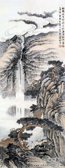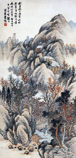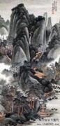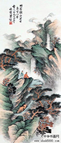 萧愻(1883—1944),字谦中,号大龙山樵,安徽怀宁人。早年从师姜筠学习山水画,成绩显著。画山水学其师,并为师代笔。后出游西南、东北名胜,行万里路,开阔艺术视野。1921年重返北京,广泛涉猎历代名家作品,深得传统艺术精华,尤醉心石涛、龚贤、梅清。1920年与周肇祥、金城、陈师曾等人发起成立中国画学研究会。曾任教于北京美术专科学校及中国画学研究会。萧氏初从临“四王”山水起步,后涉宋元诸家,受明清之际黄山画派影响较大。对于前贤,最推崇龚半千,从龚半千遗法中融汇、提炼,使其皴、擦、点、染、干、润、浓、枯综合表达极为优美,笔下境界气势苍莽,雄浑深秀。所作山水往往山重水叠,构图饱满,但层次分明,用墨及赋彩(包括浅绛、青绿)皆相当精致。出版有《萧龙樵山水精品二十四帧》、《课徒画稿》。卒年六十二。